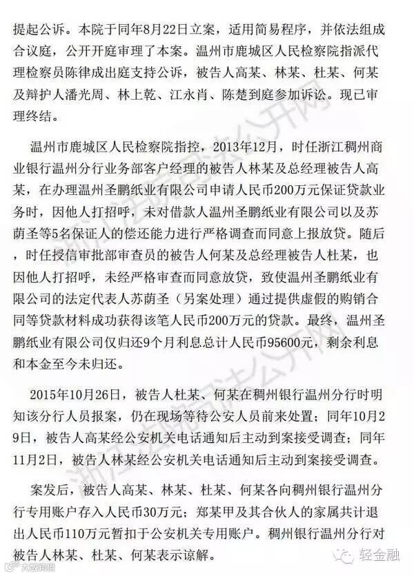 原标题:200万不良贷款损失追回就没事?温州一银行的审查员和审批老总被判刑