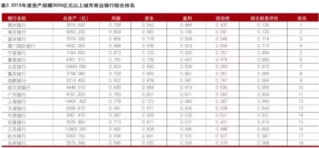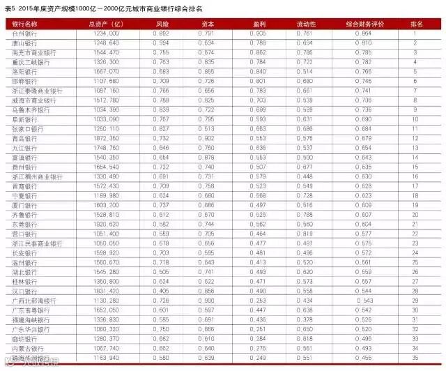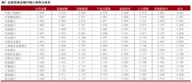 2016中国商业银行竞争力评价排名结果