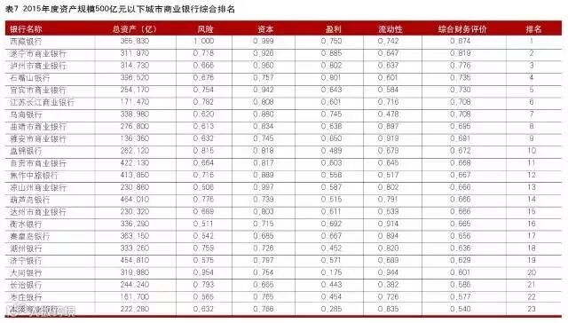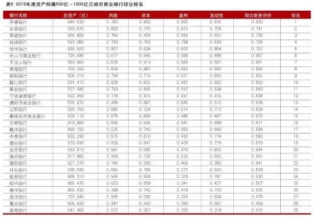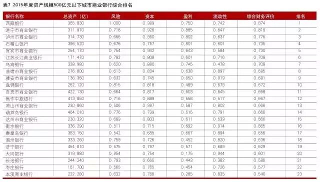 文后附2016中国商业银行竞争力评价排名结果
