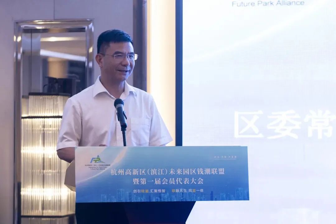 区委常委、统战部部长朱黎明对联盟的成立表示祝贺,并结合区内发展,提出几点要求:一要凝聚奋进共识,深刻把握共富主题;与党同心、与历史同行、与城市发展同频共振,凝心聚力、奋发有为,建设“天堂硅谷”、打造“硅谷天堂”,向着钱潮联盟成立大会确定的目标努力奋斗。二要深刻把握发展主题;在当下特殊时期各位更应形成抱团迎战的良好局面,展现出超强应变能力,以实践验证高质量发展的高新滨江模式。三要立足自身特点,把握数字发展趋势;发挥数字产业先发优势,不断提升园区运营服务的智慧化,紧随产业数字转型的步伐,持续沉淀高新区(滨江)实现更高质量发展的软实力,让更多优质企业扎根高新区。