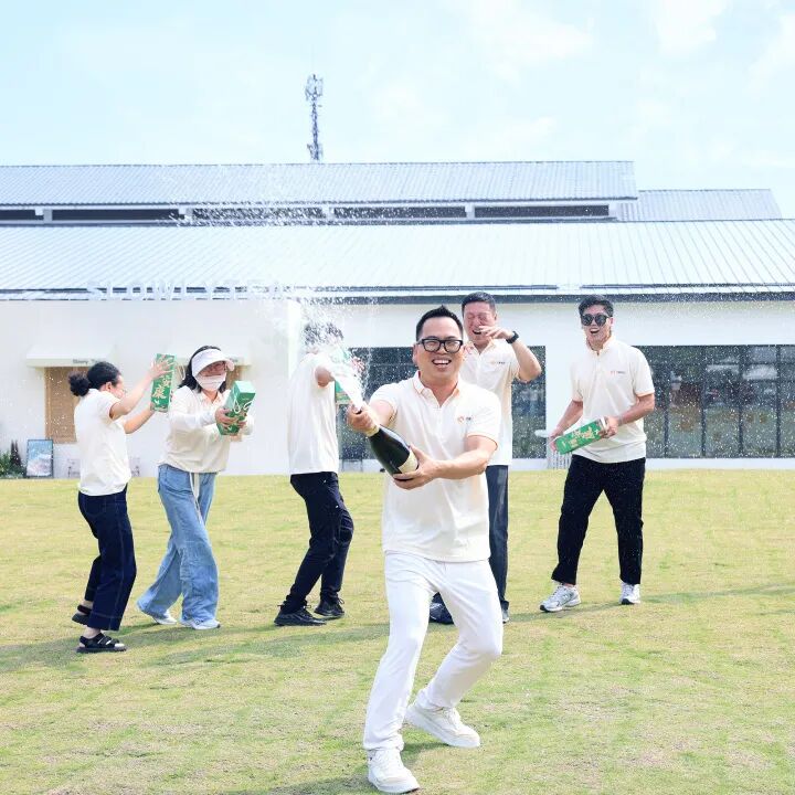 最终,蓝队以综合评分第一摘得桂冠,功量集团董事长施胜锡为获奖队伍颁发奖杯,并开香槟庆祝。