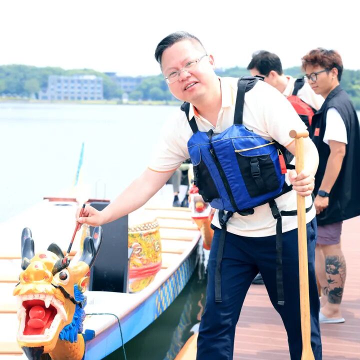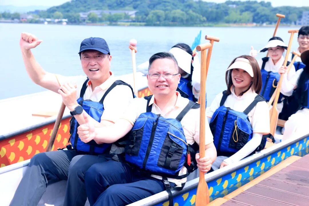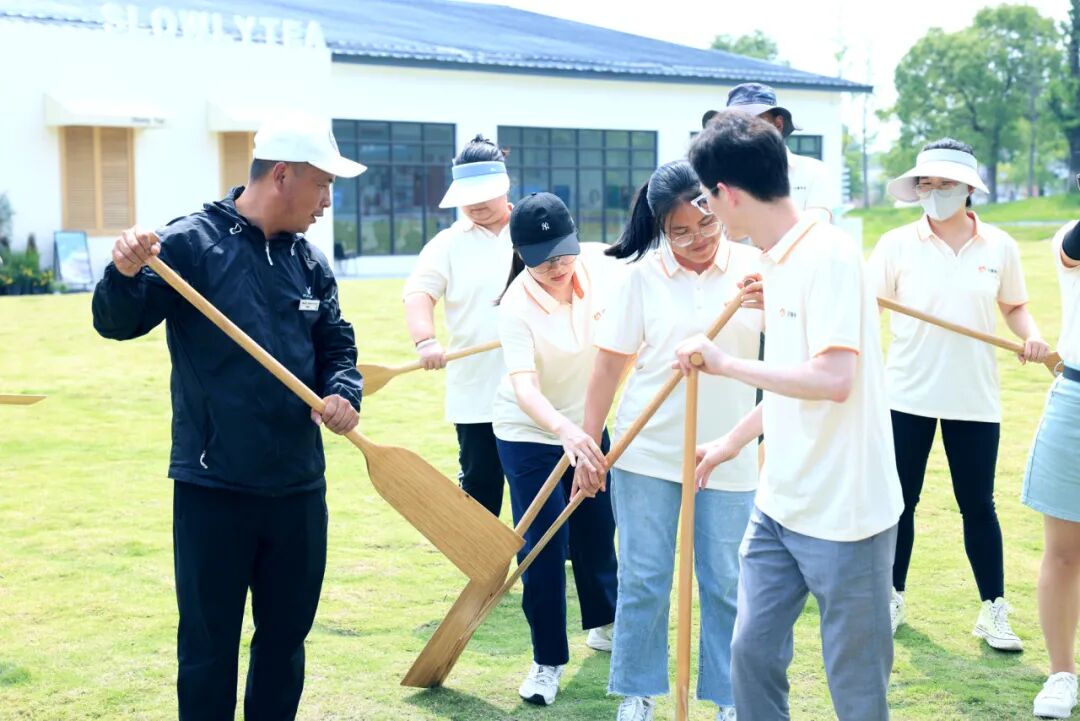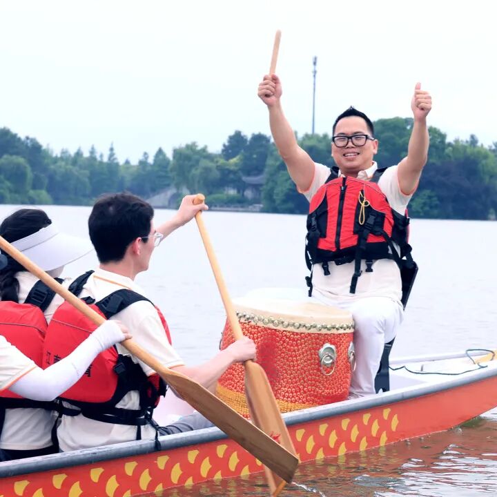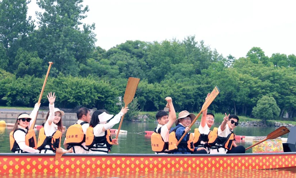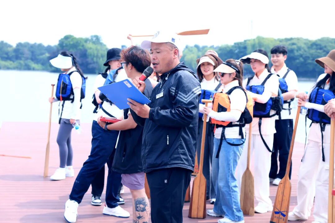 这项起源于5000年中华文明的龙舟运动,不只是民俗娱乐,更是“团结、拼搏、坚毅”的精神象征。专业教练讲解龙舟知识、示范动作,伙伴们认真热身,摩拳擦掌准备征服湘湖水面。