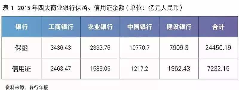 保函业务的市场规模高速增长,是经济新常态下银行重要的利润支撑点和增长点。2015年,工农中建四大商业银行保函余额达到24450亿元,信用证余额7232亿元(见表1),保函业务的规模体量大,已经远远超越信用证业务余额,是其3.4倍。历史来看,2006年我国境内保函余额已超越信用证,在银行担保承诺及国际业务领域的地位和应用日益凸显。全球来看,保函(备用信用证)的市场规模也远远超越信用证,比如,美国2014年二季度,164家大银行备用信用证余额2064亿美元,商业信用证只有103亿美元。保函已经成为银行涉入贸易投资领域的主流业务。