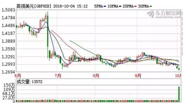 今天10月4日),英镑对美元的汇率一度跌至1.2779,创1985年6月来最低。我们可以毫不夸张地说:英镑遭遇了一次大溃败。