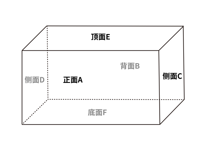 (2)木箱(如下图)的正面A和背面B需印制货物的生产厂家名称,侧面C和侧面D需明确印制产品名称、批号、箱号、毛重、净重等信息。产品名称、批号、箱号、毛重、净重等信息可以喷码或手写登记,但不得涂改。