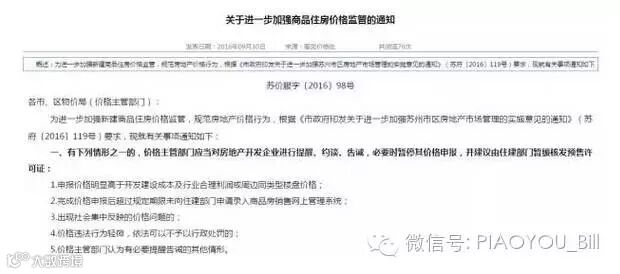 苏州此前已经出台了房地产调控措施,昨夜继续加码。昨夜,苏州市物价局发布了《关于进一步加强商品住房价格监管的通知》,其中规定: