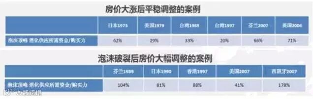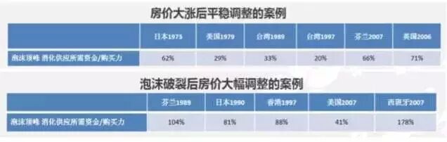 而出现泡沫破裂的,大部分在顶峰期第二个指标都超过了80%,也就是说,即使居民部门将绝大多数可用于投资的资金全部用于购房,也不一定能够消化供应。