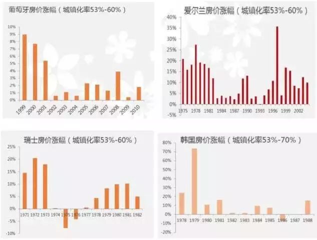 接下来,我们考察在类似中国当前城镇化水平阶段,其他国家房价变动情况。