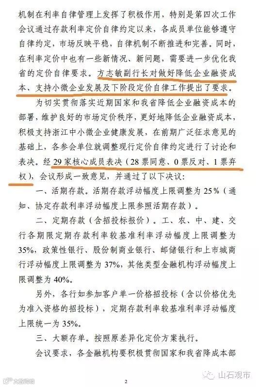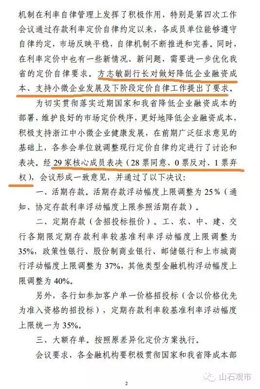 从今天起,浙江省银行业将实施今年新一轮利率攻守同盟,以四大行浙江省分行为首的29家核心银行集体表决(28票同意、0票反对、1票弃权)约定,通过以下决议: