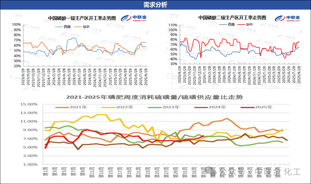 本周硫磺市场在需求韧性支撑下,价格维持震荡偏强走势。短期来看,下游磷肥第二批配额的释放,9月开工预计仍维持高位,新能源方面磷酸铁锂9月排产继续新高,产量有望突破32万吨,因此预计对硫磺后续有较强的需求。国际上印尼、摩洛哥对硫磺的需求也在增多,货源分流影响中国到港情况,短期建议对硫磺保持看多思路,但边际走弱可能一定程度上限制硫磺的涨幅。