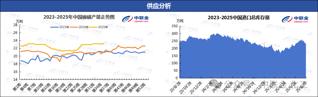 1.本周中国硫磺周产量数据为23.11万吨,本周山东地区供应小幅增多,但宝丰检修抵消了产量增加,总体周度产量减少0.01万吨。