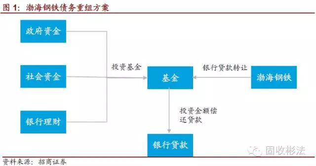 渤海钢铁的债务重组方案涉及到政府资金、社会资金和银行等多方面。首先,通过银行理财、政府资金、社会资金投资设立一个基金,该基金继承并偿还渤海钢铁的银行贷款。初步定下基金的利息为3%,基金具体如何运作和退出渠道仍然有待讨论。如果未来基金的运作方式是拥有渤海钢铁的股权,那么该方案是通过银行投资基金形式的债转股。