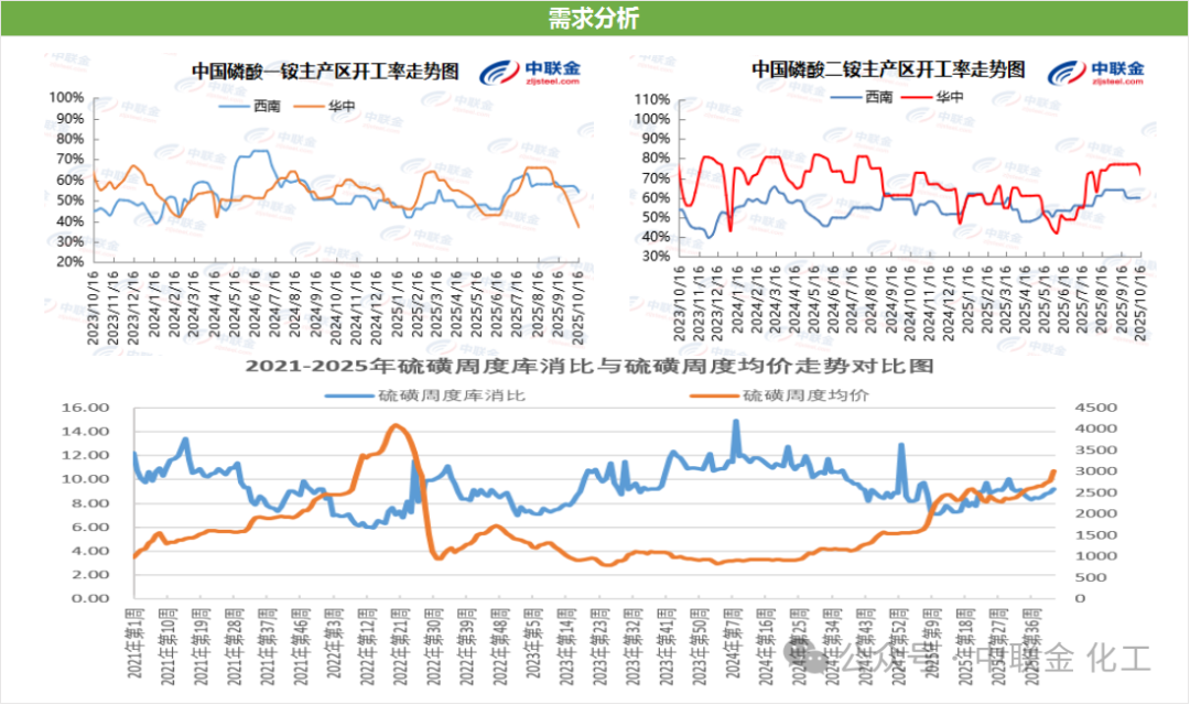 国庆长假后硫磺市场总体呈上行态势,宏观扰动持续发酵,俄罗斯短期硫磺供应有限转而采购中亚、中东硫磺,利多因素驱动,市场整体处于偏强格局。市场在“抢货源”下存在较强支撑,10月硫磺到港较少,但后续需求增速将逐步回落至常规水平,短期仍然维持易涨难跌态势。