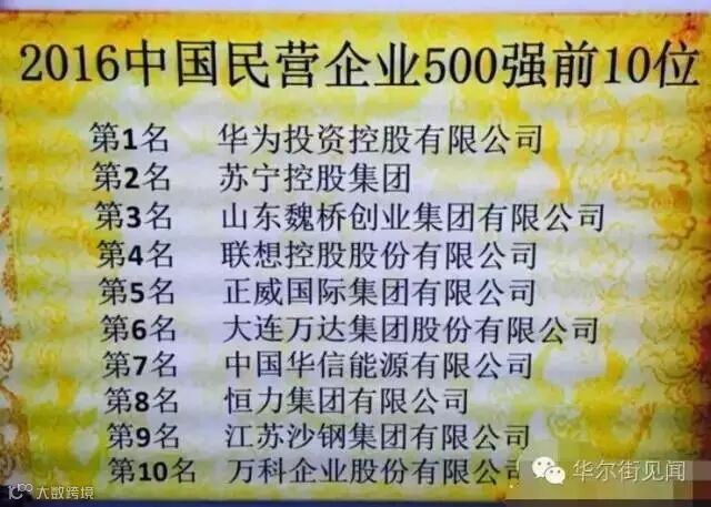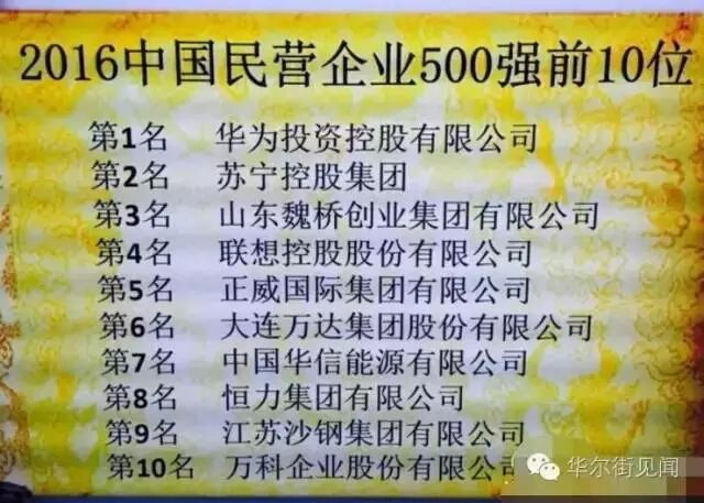 2016年中国民营企业500强前10位