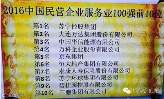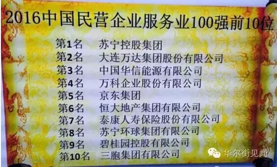 2016中国民营企业服务业100强前10位