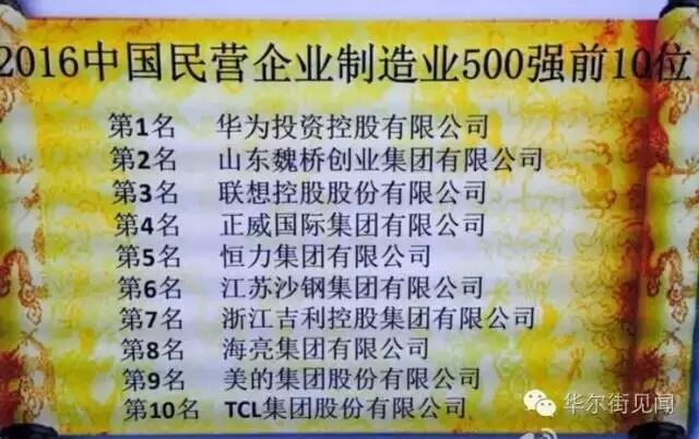 2016中国民营企业制造业100强前10位