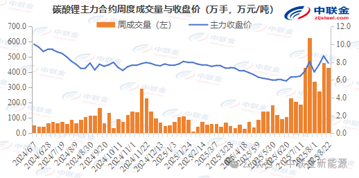 近期碳酸锂行情主要受市场情绪驱动,宜春锂矿复产后,市场担忧供应端减产不及预期,以及海外进口增量对供应缺口形成补充,市场情绪有所回落,投机资金平仓主导盘面走势。然而从基本面来看,计入宜春复产及海外矿石进口增量,虽供需缺口或有所收窄,但三季度仍维持去库预期。本周碳酸锂周度产量环减800吨,周度库存环减700吨。供应端仍存在较大不确定性,江西、青海部分项目停产风险犹在。需求端处于三季度传统旺季,本周价格下跌后下游采购量较上周显著增加,需求韧性对市场形成支撑。短期碳酸锂行情预计保持宽幅震荡,下方7.5万元有强支撑,上方压力位8.5万元,操作上可关注逢低试多的机会。