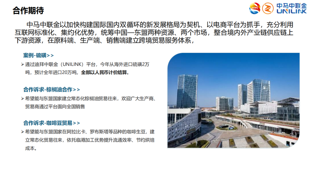 未来,中马中联金将继续深化与印尼等东盟国家的合作,积极探索在大宗商品跨境贸易领域的创新合作模式,致力于成为连接中国与东盟经贸往来的重要桥梁。