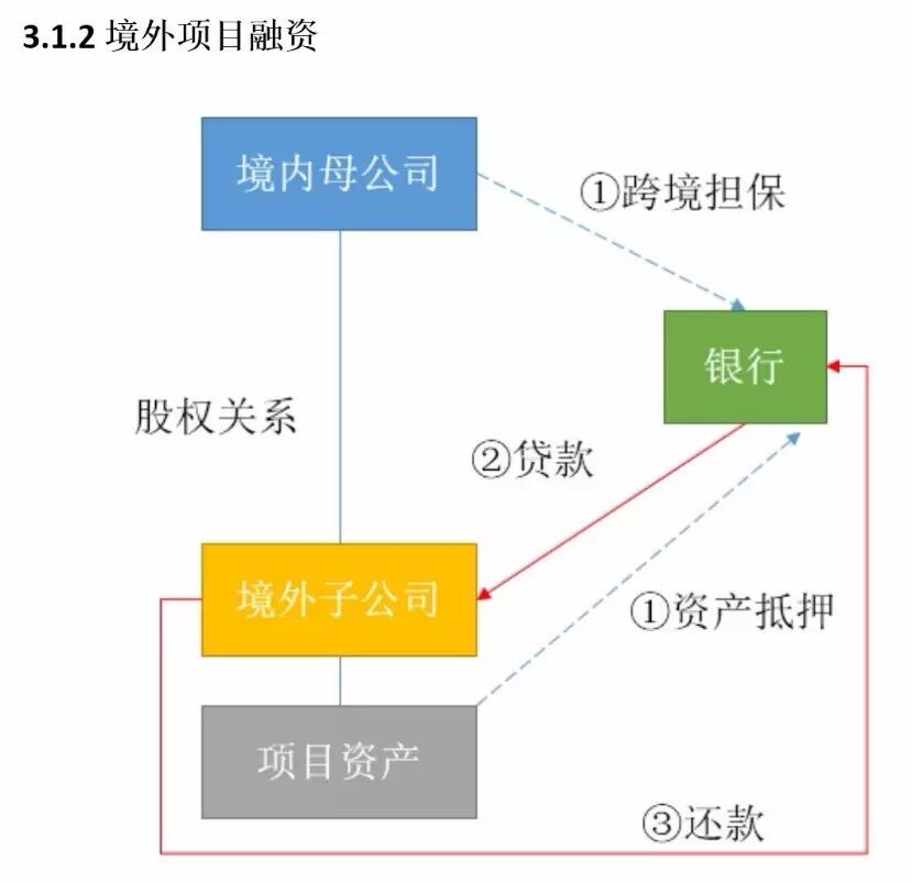 第二种方式就是中国企业境外投资,也可以操作项目融资。项目融资纯粹依赖于境外项目资产以及未来收益作为还款来源,作为担保措施向银行借钱,境内母公司可以提供跨境担保、也可以不提供跨境担保。在这种情况下,银行对项目要求是比较高的,包括供应商是谁、建筑商是谁、下游的客户是谁?他们签了什么协议?要有保险安排,以及境内外直接投资的审批手续都非常完善,资金管控也非常到位。所以项目融资难度也是非常大的,而且只适合于某些未来收益非常稳定的项目,特别是政府类项目,比如境外国家主导的电站建设等等。