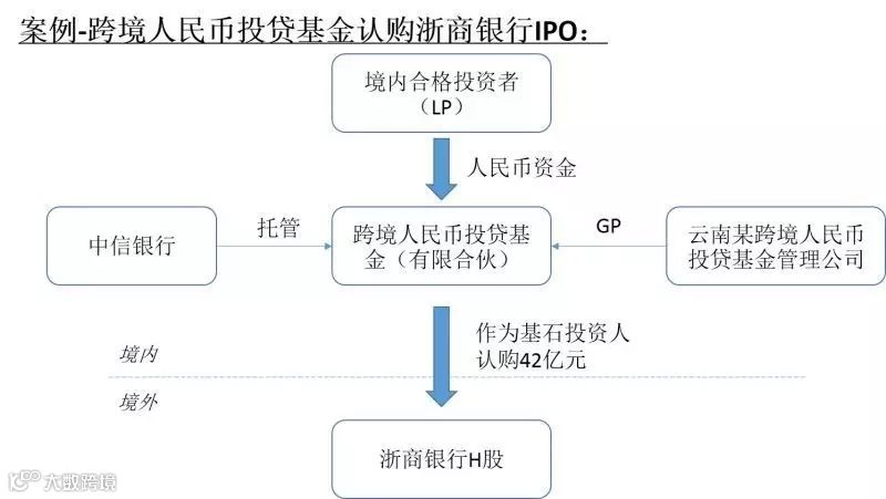 下面我给大家讲一个案例,公开信息应该能查到。这是境内投资者募集人民币基金投资浙商银行H股IPO,用了跨境人民币投贷基金的出境方式。其GP是云南省的基金管理公司,托管行是中信银行昆明分行,额度是42亿人民币。而且,跨境人民币投贷基金可以认购注册于境内的浙商银行H股,表明它可以用于认购主要资产位于境内的境外公司股权,从而规避内保外贷资金回流的问题。