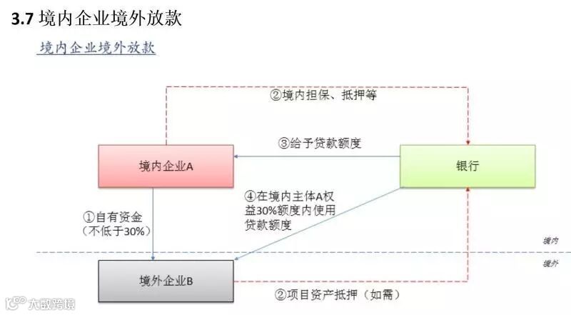 还有一个通道叫境内企业境外放款,这是2009年出台的一个政策。外汇局[2009]24号文规定,境内企业可在上一年度经审计的所有者权益30%额度内向境外全资附属企业或者参股企业放款。这是一种贷款或债权,放款额度两年内有效,一般大部分企业的所有者权益额度不大,因此境外放款的额度也受到限制。