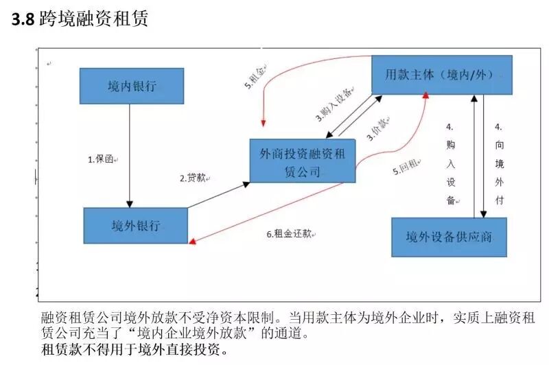 另外,值得注意的是,租赁公司作为境外放款的主体,不受净资本限制(或者我们理解为不受股东权益限制)。所以外商投资租赁公司操作境内企业境外放款可以突破前面提到的一些限制,包括一般的情况下境内企业境外放款额度不得超过净资产30%的规定,或自由贸易区特殊情况下的50%规定。