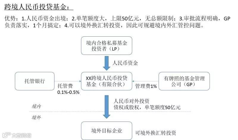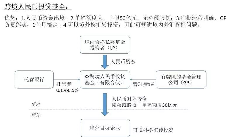 跨境人民币投贷基金是个人民币资金出境通道,属于私募基金,投资标的可以是境外公司的股权,也可以是债权,单笔额度在50亿人民币以内由省级部门审批。1%的管理费,成本适中。