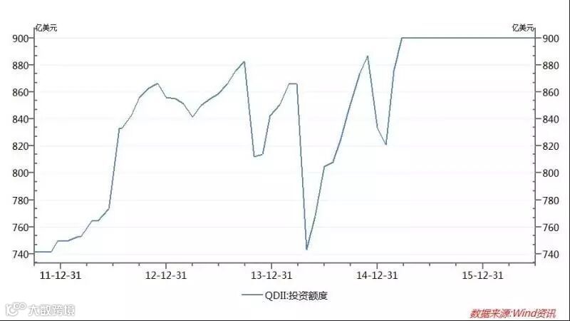 但是,合格境外投资者资金出境有哪些问题呢?我们可以看这个图:从2015年中到现在,QDII额度就几乎没有变过,因为从14年没的时候我们外汇储备就急剧下降。现在,QDII额度稳定在900亿美元,而且额度几乎用完了。