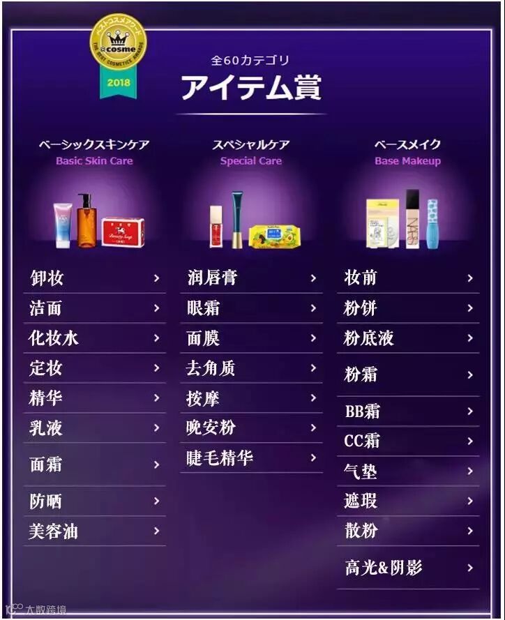 名单作为日系美妆的风向标,是汇集了各个部门优秀产品的一个综合性奖项,集中推荐用户体验最多好口碑的产品。