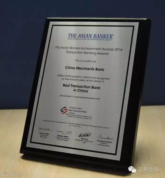 近日,由国际权威财经机构《The Asian Banker》(亚洲银行家)主办的2016年度国际交易银行成就大奖评选,在越南河内揭晓最终结果。经过多轮严格审查和国际评委会投票,招商银行在与众多强劲外资银行较量中,凭借在交易银行领域创新的业务融合、完备的体系架构及优秀的业绩表现,勇夺“中国最佳交易银行”大奖,这是中资银行首次在交易银行领域获得国际认可,一举摘得银行业的“小金人”。