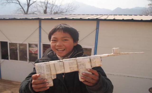 在云南彝良的山坳里,一个10岁孩子自己用纸做了一把玩具枪。他喜欢和小伙伴一起玩游戏,但是他没有自己的玩具,于是动手做了自己的第一个玩具。