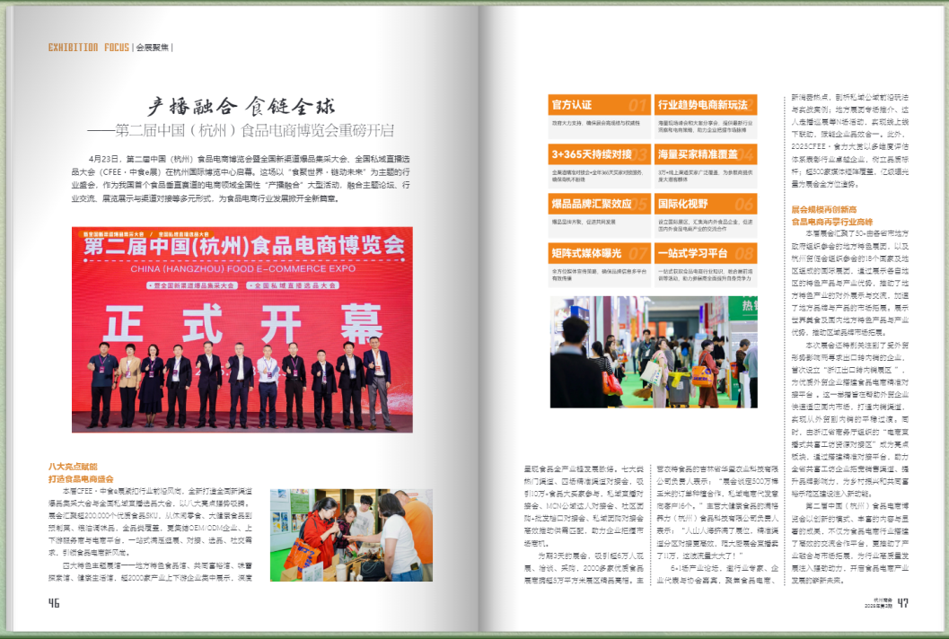 此次专题报道从多维度展开:既聚焦展会整体的专业性,肯定了在展位规划、参展企业资质审核、行业论坛质量、商贸洽谈合作等方面的严谨与高效;又深入剖析展会所呈现的行业趋势,如健康食品的爆发式增长、电商直播的精细化运营、食品电商的新机遇等,为从业者提供了前瞻性视角;更通过创新案例解析,挖掘了一批在产品包装、营销模式、供应链优化等领域具有突破性的企业实践,全方位展现了展会的深度与价值。