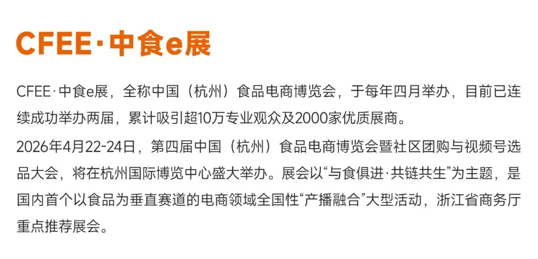 我们诚邀各界同仁共赴行业盛会,携手推动食品电商产业迈向更高质量的发展阶段,共同书写食品电商新篇章!