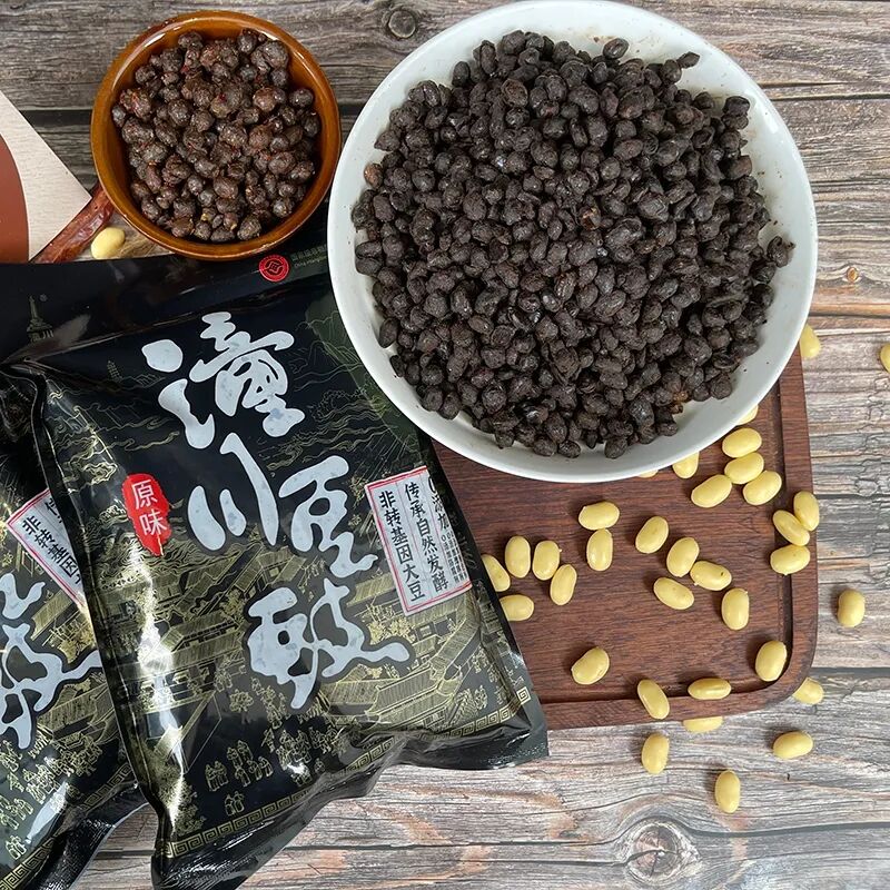 2、潼川豆豉是采用东北优质非转基因大豆,经过长达6个月以上的传统发酵而成,豆豉软糯,豉香浓郁,回味无穷。
