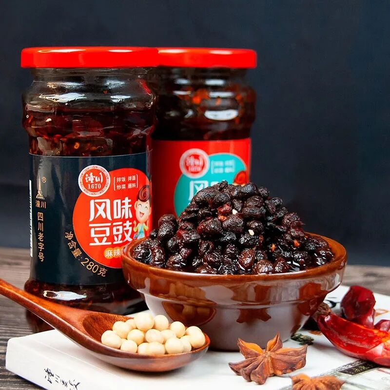 1、潼川风味豆豉是川菜老师傅以潼川豆豉添加多种天然香料经过植物油炒制而成,香辣爽口,风味独特。