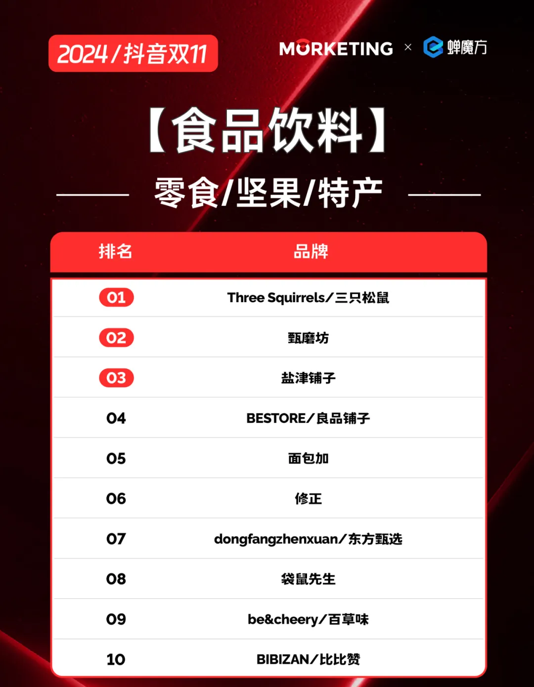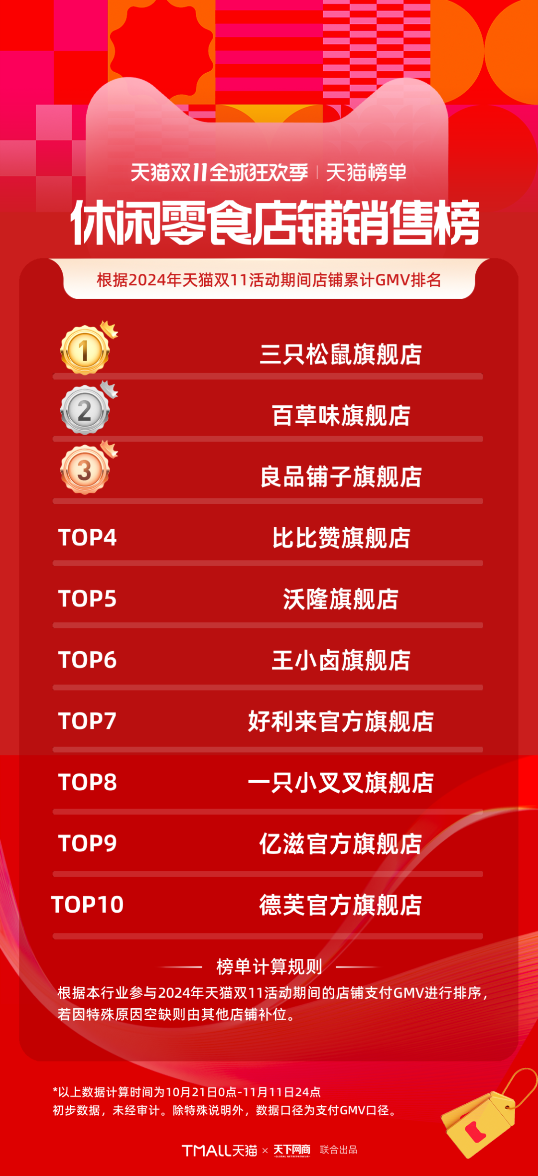 下面来看看天猫平台双十一食品各品类销售榜单~