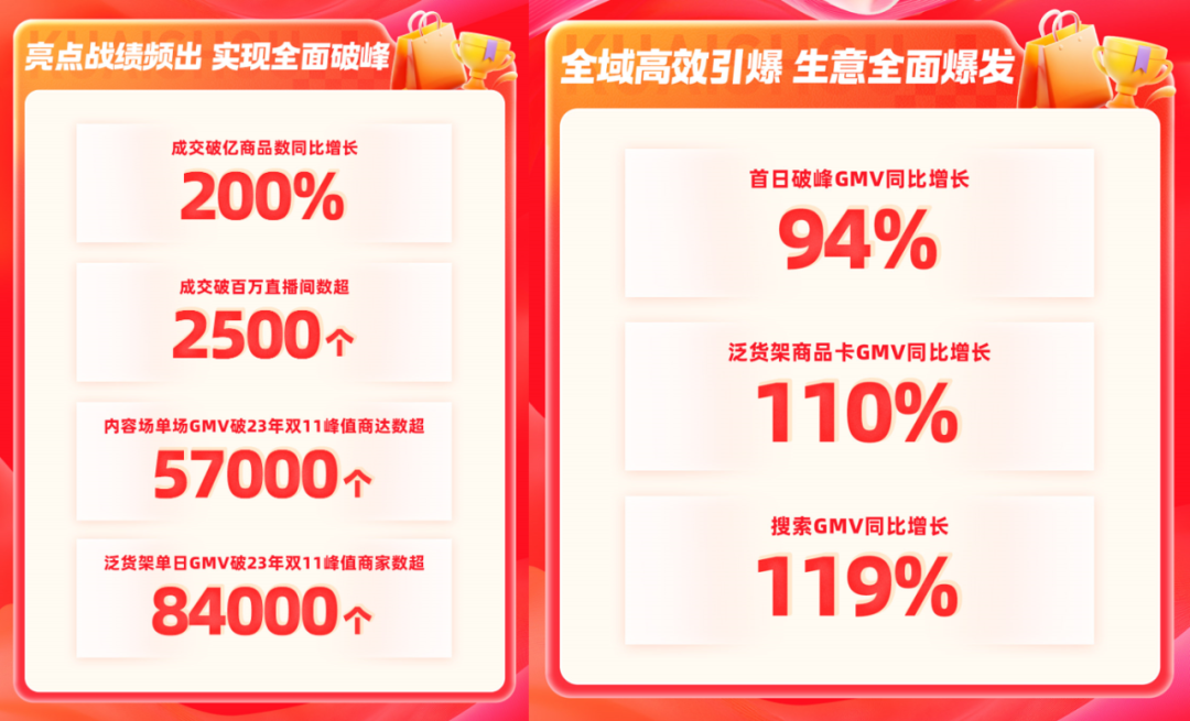 今年快手双11期间,众多品牌实现了业绩突破。以直播间和短视频为代表的快手电商内容场持续繁荣,高速发展的泛货架场则为商达经营提供了更大空间。