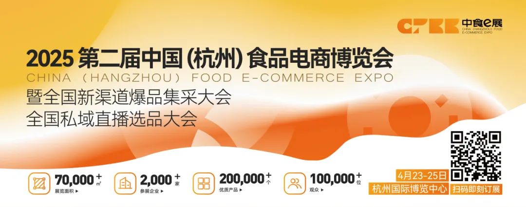 第二届中国(杭州)食品电商博览会暨全国新渠道爆品集采大会、全国私域直播选品大会将于2025年4月23日-25日举办,为全国食品电商从业者提供一个合作交流平台,目前展位火热预定中,快来抢占市场先机!
