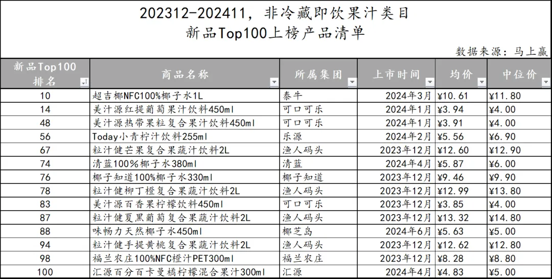 在回顾了2023年12月至2024年11月这一年间饮料市场的TOP100新品后,我们不难发现,创新与多元化已成为推动行业前行的核心动力。