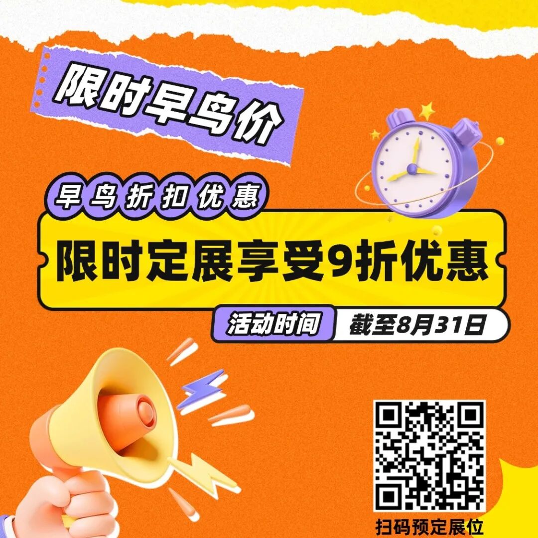 在回访过程中,展商们对本届展会的专业性给予了高度评价,一致认为展会从展前培训服务、展期商贸对接以及行业趋势的深度洞察等方面都表现出了很高专业性。而在参展效果上,展商们更是收获颇丰,不仅达成了可观的合作意向与订单,还拓展了人脉资源,捕捉到了行业最新动态。基于此,主办方为品牌方带来重磅福利,截止 8 月 31 日前定展即可享受早鸟价优惠!!