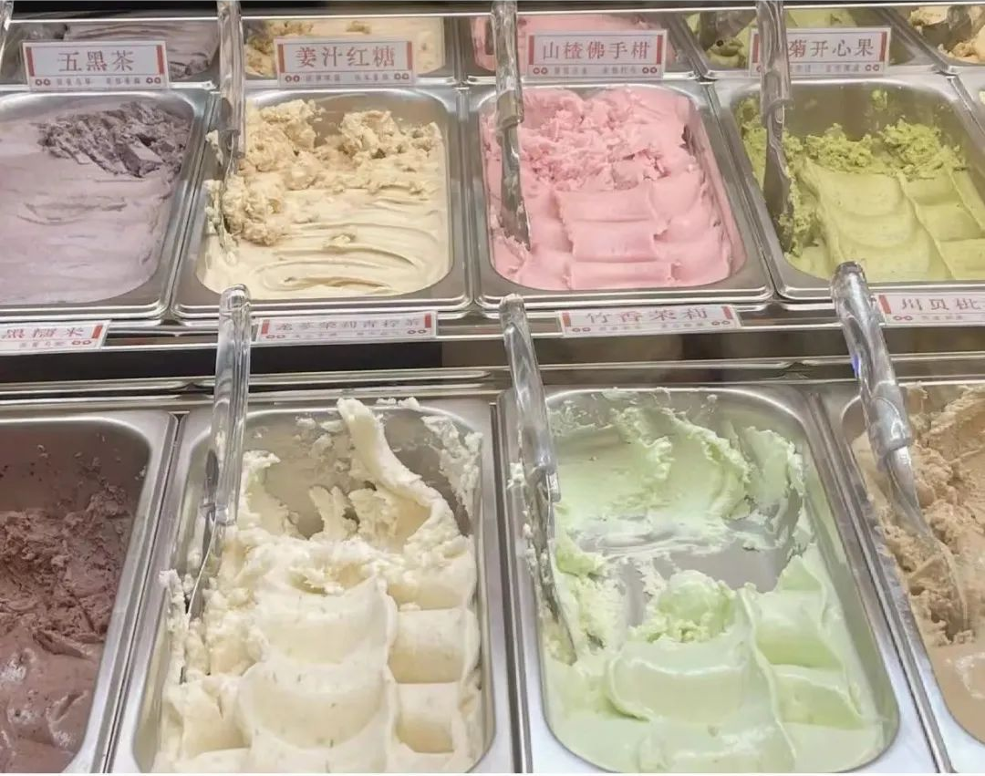 该店铺负责人介绍,他们推出的冰淇淋融入了传统中药元素,将“药食同源”的理念巧妙融入现代甜品之中。店内热销的中药冰淇淋口味多样,包括清新的薄荷西瓜霜、独特的野菊开心果、醇厚的烟熏乌梅、酸甜的山楂佛手柑以及温润的川贝枇杷膏等,每一款都令人耳目一新。