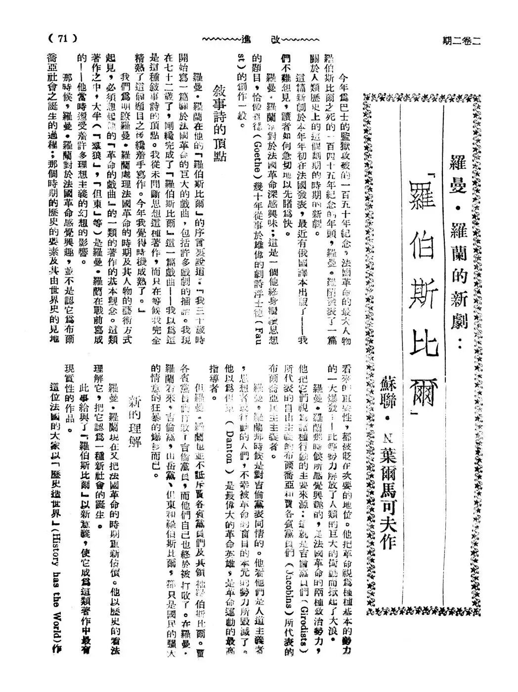 如发刊词《我们的希望》中所说,《改进》除了对抗战建国给予充分的关注也“绝不忽略各种专门学问的研究”,始终关注学术与文化的动向。著名历史学家周予同的历史讲座《中国的旧史学与新史学》、历史地理学家李长傅的地理讲座《长期抗战与中国地形之关系》等都被整理刊发;同时,国外前沿学术研究、经典文学作品也被引入国内读者视野。