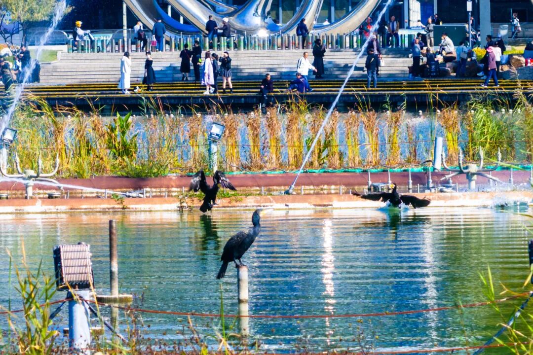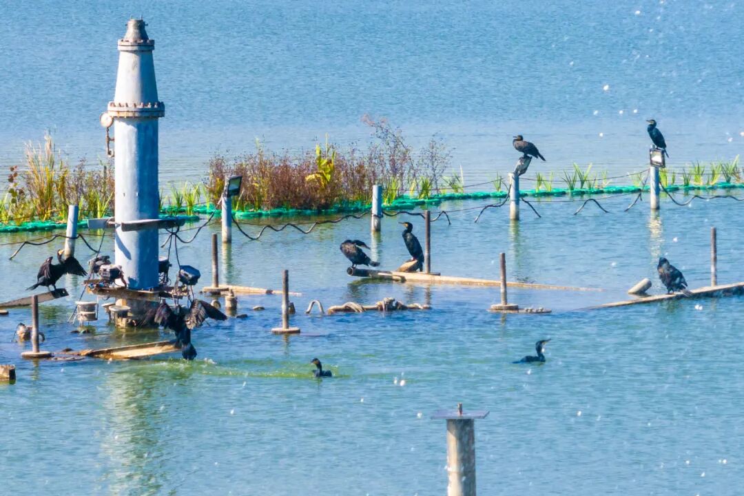 鸬鹚是大型的食鱼游禽,善于潜水,潜水后羽毛湿透,需张开双翅在阳光下晒干后才能飞翔,所以远远望去就像在自信地展示自我一样。加之鸬鹚并不惧人,也是玄武湖内最易近距离观察的鸟类之一,它们也被称为玄武湖最“自信”的候鸟。从十月下旬开始,大批鸬鹚在此区域栖息、觅食,成为玄武湖冬春季节一道独特的生态风景线。加之鸬鹚们频繁地在此起飞降落,这里也被游客们戏称为玄武湖的“水上飞机场”。