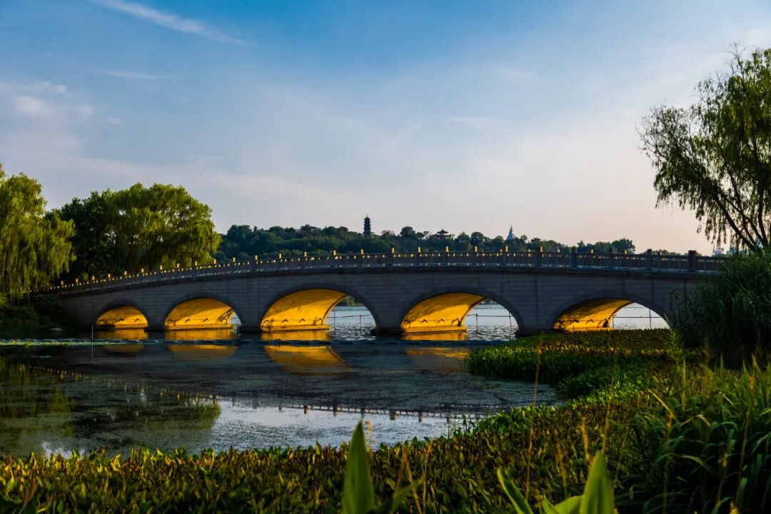 钟毓桥,如一道飞虹连通古十里长堤。“此地有高山,有深水,有平原。此三种天工,钟毓一处,在世界中之大都市诚难觅此佳境也。” 孙中山对南京城的描述,正是钟毓桥的精华所在。日落时分,随着日落西斜,金色的光线穿透桥洞,桥身被染上了一层耀眼的金色。桥下流水潺潺,波光粼粼,金光在水中摇曳生姿,与桥上的光辉交相辉映,构成了一幅流动的金色画卷。