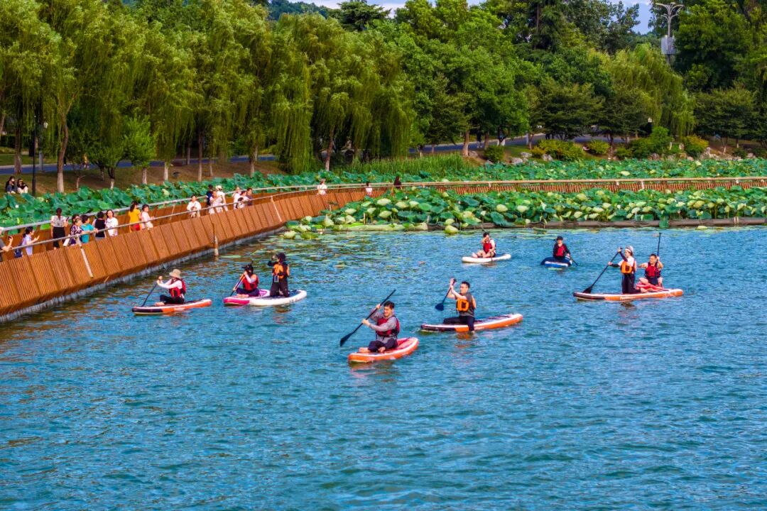 玄武湖以其广阔的水域和秀美的自然风光,被国际奥委会主席雅克·罗格赞誉为“国际一流纯天然水上运动基地”。龙舟、皮划艇、赛艇、帆船......玄武湖的湖面上总是活力十足。为了丰富玄武湖景区游园内容,满足市民对全民健身运动的需求,玄武湖景区探索旅游+体育的新模式,在东南湖阳光码头打造了“玄武湖水上运动基地”,积极推动水上运动的普及和发展。