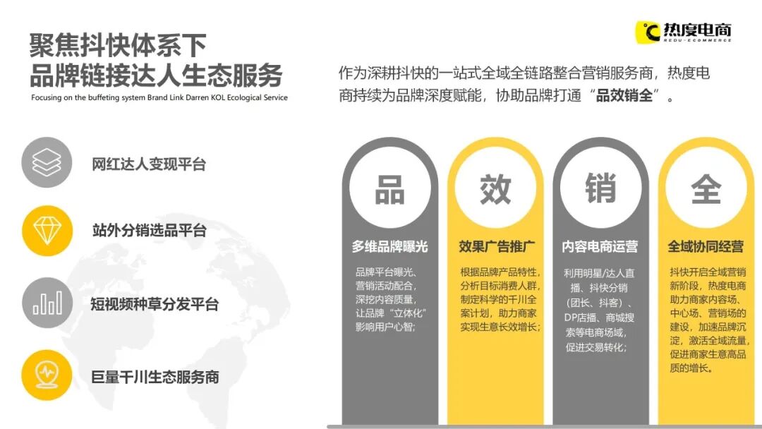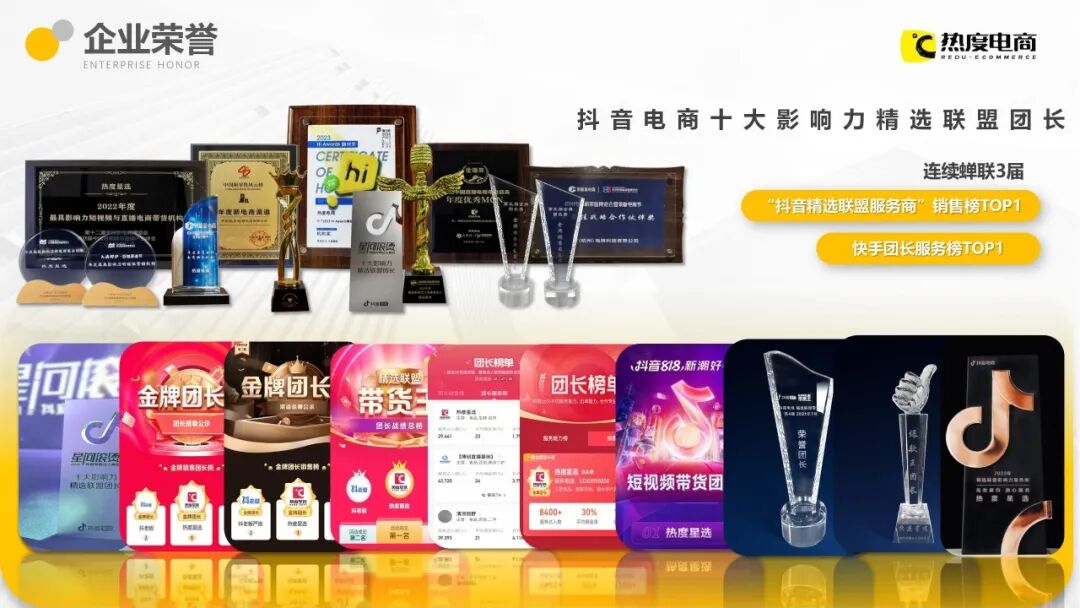 热度电商成立于2020年8月,是一家专注于短视频直播电商的整合营销服务商。依托强大的业务体系,精湛的业务能力,专业的技术团队,发展成为集网红达人变现、抖快视频号购物分销、短视频种草分发、智能分销SaaS、全案营销和整店代运营于一体的综合性创新型电商企业,致力于打造多元化的电商变现体系。截至目前,已在浙江、江苏、山东、陕西、辽宁、北京等地区 拥有近十家分公司,热度体系下伙伴逾千人。