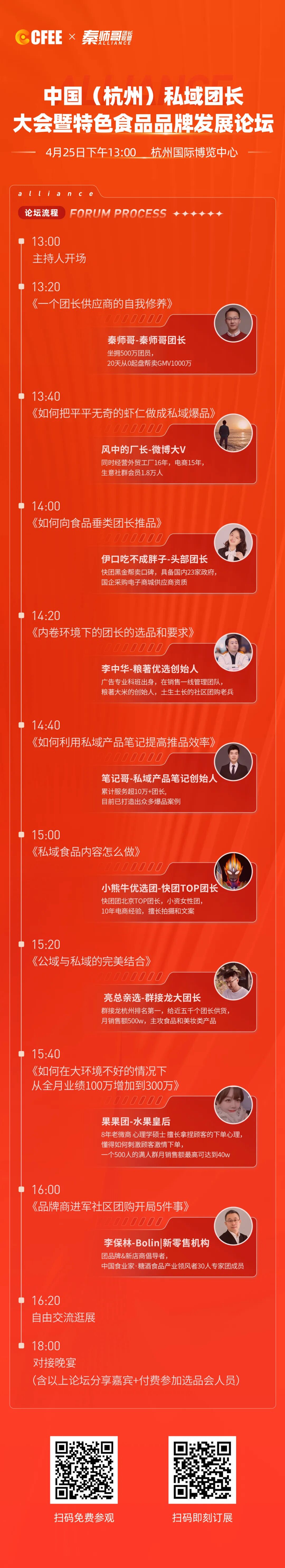 4月25日下午,组委会携手秦师哥团长联盟,将举办一场盛大的“中国(杭州)私域团长大会暨特色食品品牌发展论坛”。