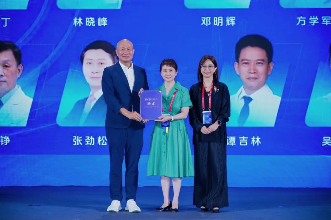 “爱尔眼科白内障青年学组”正式成立,爱尔眼科医院集团副总裁王丽华(右一)为青年学组组长沈阳卓越爱尔眼科医院副院长王静(中间)、青年学组副组长湖北爱尔眼科医院白内障科主任周莉(左一)颁发聘书