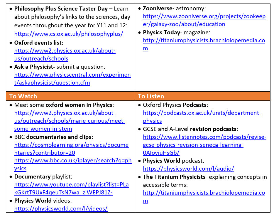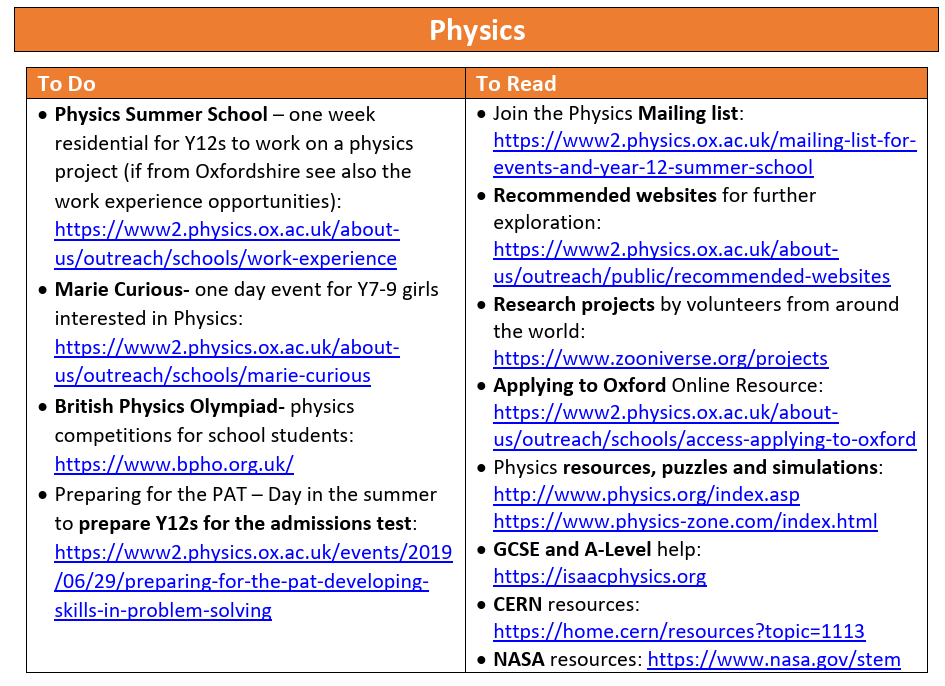 别担心,牛津在他们官方推荐给学生参加、了解、阅读的资源包中都为大家标注出来了,大家按照牛津的指点直接去做就可以,这里我们贴出物理学的: