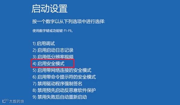 3、重启后按数字键 4 进入“启用安全模式”。